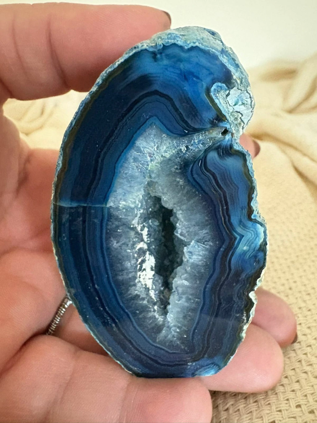 Os geodos são geradores de energia, eles conservam e ampliam a energia dentro deles. Tem aparência de caverna, assim difundem lentamente a energia, suavizando-a. Além de proteger, estimulam o crescimento espiritual. A ágata proporciona equilíbrio emocional, físico e intelectual e auxilia na cura de bloqueios emocionais. Possui energia suave, estimula aceitação e a confiança em nós mesmos. Ela também intensifica as faculdades mentais, ao mesmo tempo que melhora a concentração.