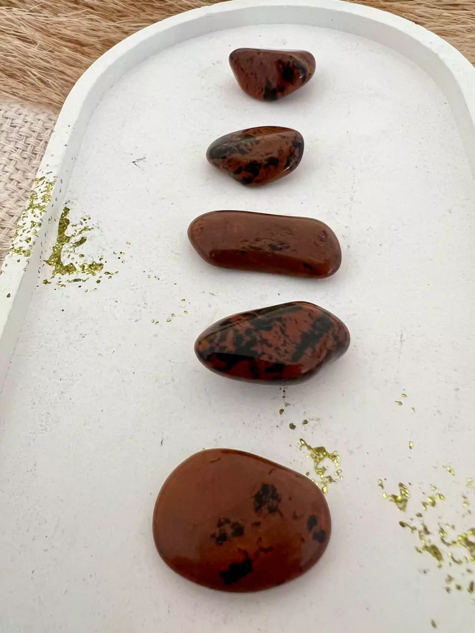 OBSIDIANA MOGNO - Ancora energias e protege dando força nos tempos de necessidade. Elimina bloqueios e estimula o crescimento em todos os níveis. Fortalece a aura e os alinha os chakras do sacro e plexo solar.